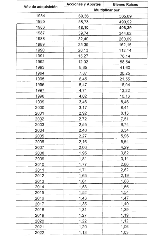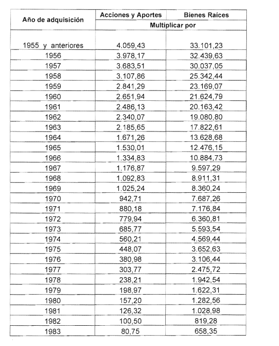 por la cifra de ajuste que figure al año de adquisición del mismo, conforme