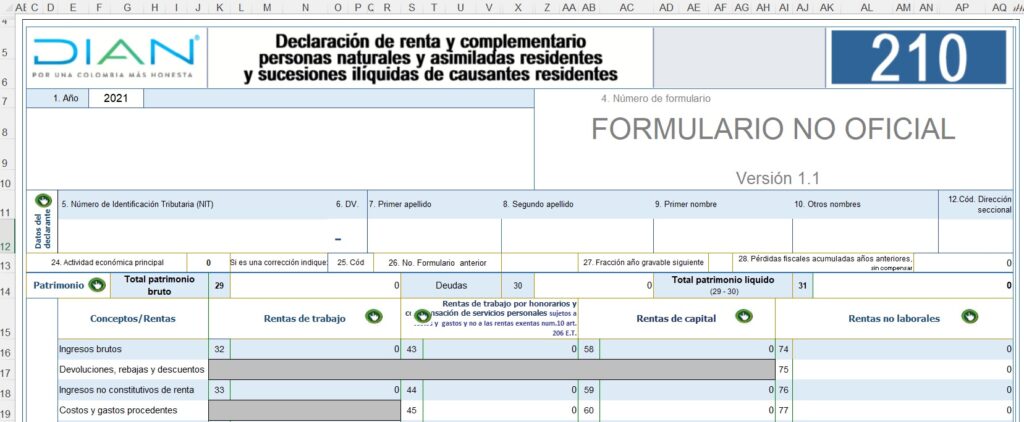 La DIAN publicó el proyecto de resolución en el cual establece el nuevo formulario 210 de Declaración de renta y complementario personas naturales y asimiladas de residentes y sucesiones ilíquidas de causantes residentes año gravable 2021.